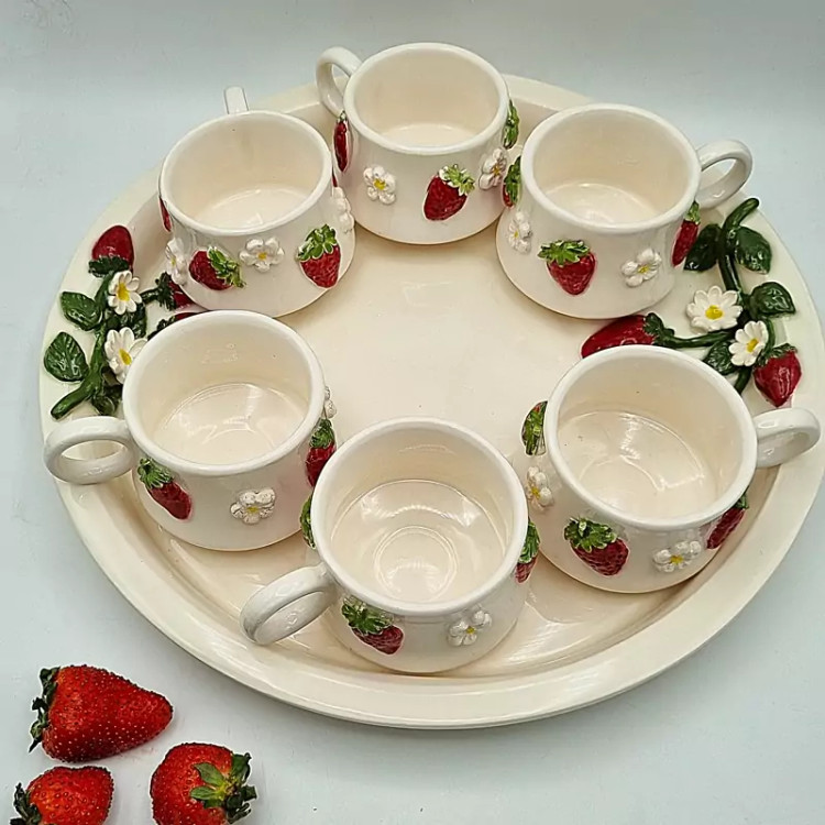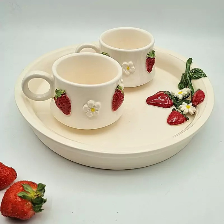 سینی سرامیکی دستساز طرح برجسته توت فرنگی توانا سرام
