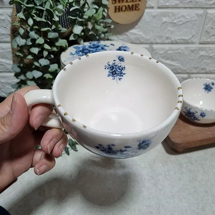 قهوه خوری لته دو عدد طرح قلم آبی سرامیکی تواناسرام