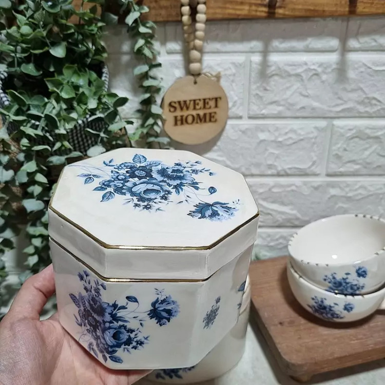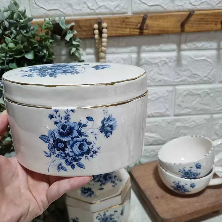 شکلات خوری طرح گل آبی سرامیکی تواناسرام (پس کرایه)