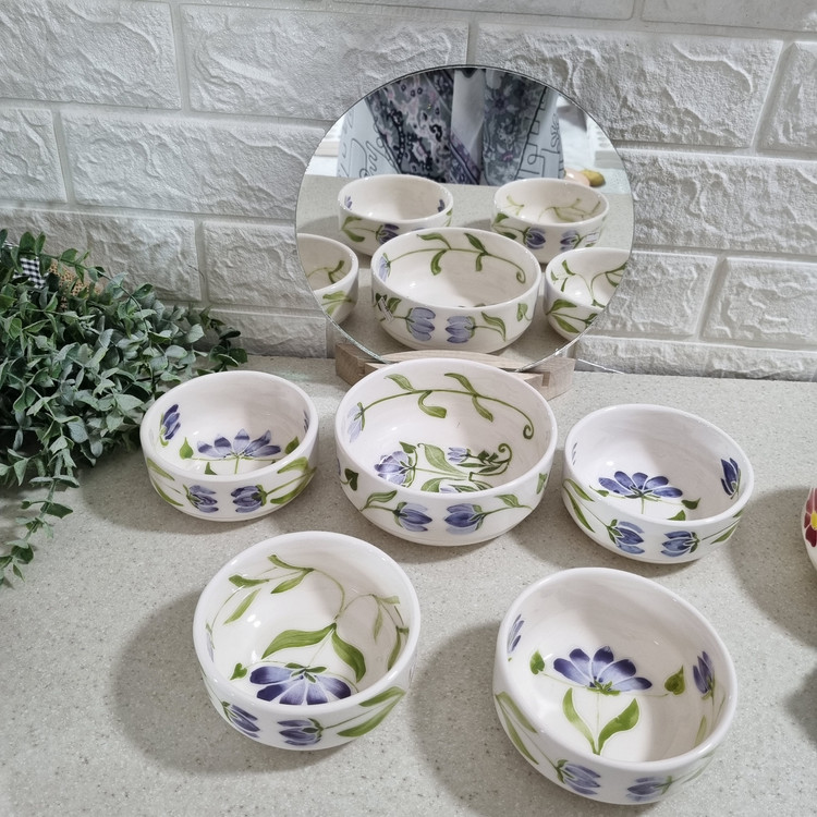 شامل ۴ عدد پیاله کوچک و یک عدد بزرگتر و یک عدد آینه